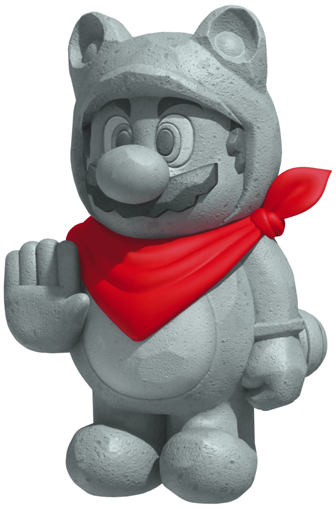 The Statue Leaf in Super Mario 3D Land is a unique item that modifies Mario’s Tanooki Suit with a red cloth around the neck. When Mario performs a Ground Pound wearing the Statue Leaf, he transforms into a statue, rendering him immune to damage from enemies and obstacles. The enemies are tricked into turning away, and Mario can crush obstacles below him during the transformation, even spiked ones. This power-up is exclusive to the game’s Special Worlds, accessible after defeating Bowser in World 8. The Statue Leaf shares similarities with the Tanooki Suit from Super Mario Bros. 3 and the Lucky Bell.