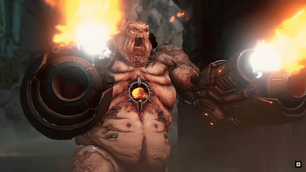 The Mancubus, a Heavy Tank-like demon in Doom Eternal, fulfills its role similarly to DOOM but undergoes significant design changes to closely align with its original appearance. The Cyber Mancubus, a stronger variant of Doom (2016), also reappears. This hulking behemoth of the demon world stands out with clear signs of man-made modifications, featuring armor-plating augmentation and a sophisticated arm-mounted weapon system. These enhancements aim to upgrade and weaponize the Mancubus’s formidable fighting capacity, making it a resilient and threatening force in battle.