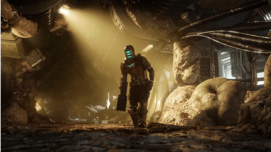 What makes the Ishimura so effective is its oppressive isolation. The narrow corridors amplify every sound: metallic clangs, distant shrieks, and the echo of your own footsteps. The ship feels like it’s decaying around you, a floating graveyard drifting through space.